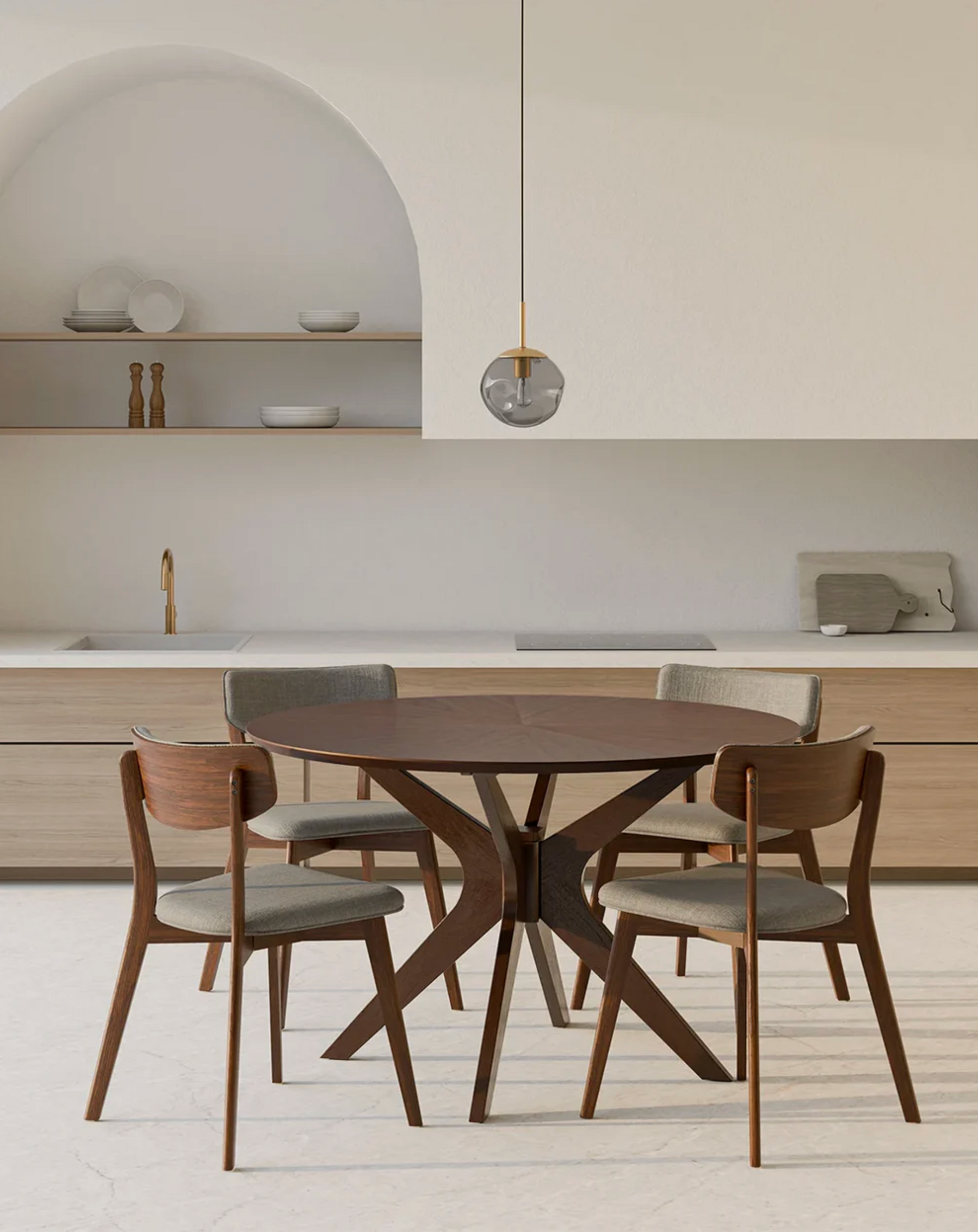 El envío de la mesa de comedor redonda es rápido y el montaje es sencillo. Está disponible en 2 preciosos colores, Roble y Nogal.